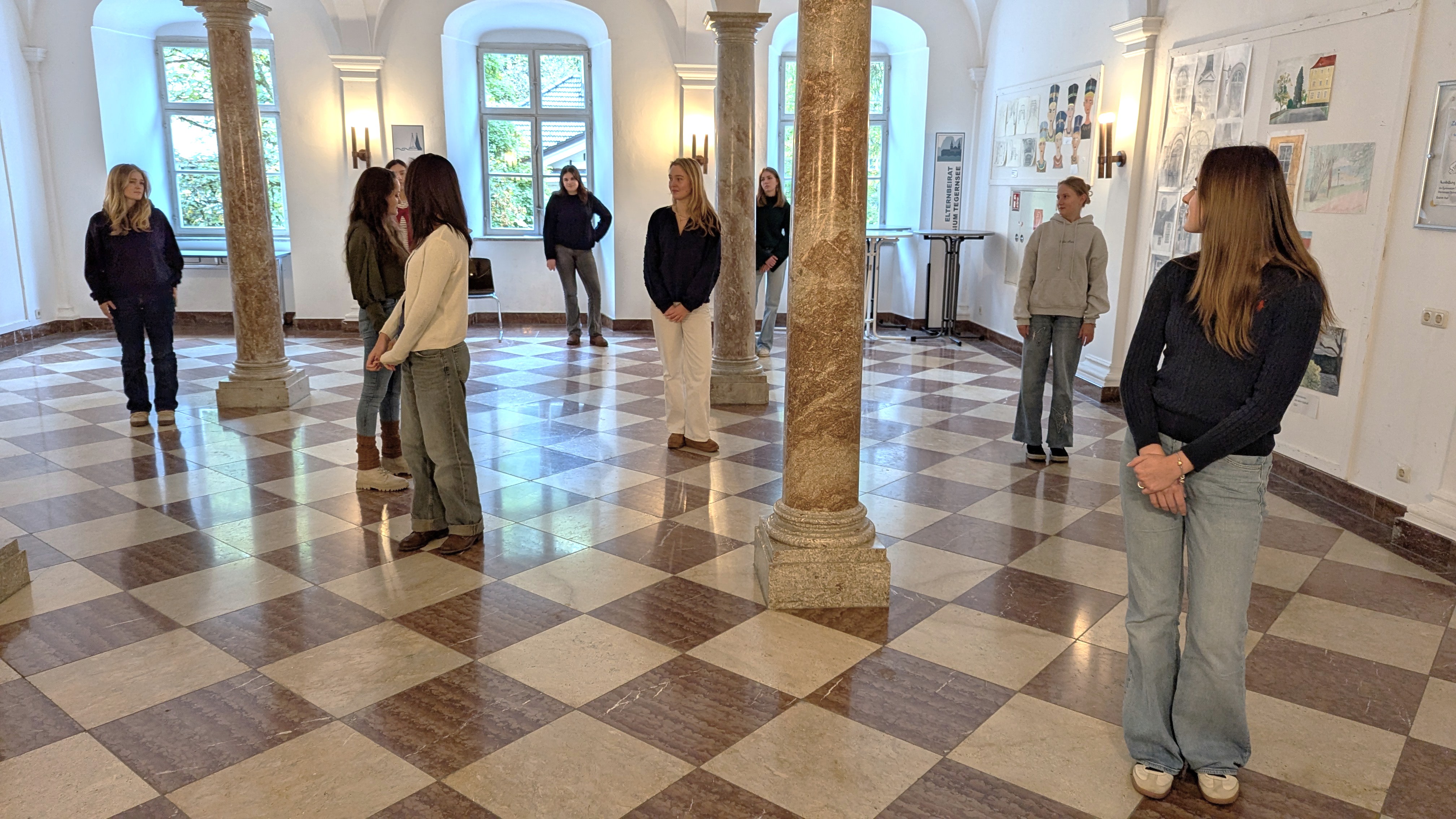 Schon nach kurzer Zeit zeichnete sich ein deutliches Bild ab: Die Gruppe, die zu Beginn noch nebeneinander in einer Reihe gestanden hatte, hatte sich weit auseinandergezogen. Einige standen weit vorne, andere blieben ganz hinten zurück – sichtbar wurde eine Landschaft sozialer Ungleichheit. In der anschließenden Reflexion beschrieben die Schülerinnen und Schüler ihre Gefühle während des Spiels: