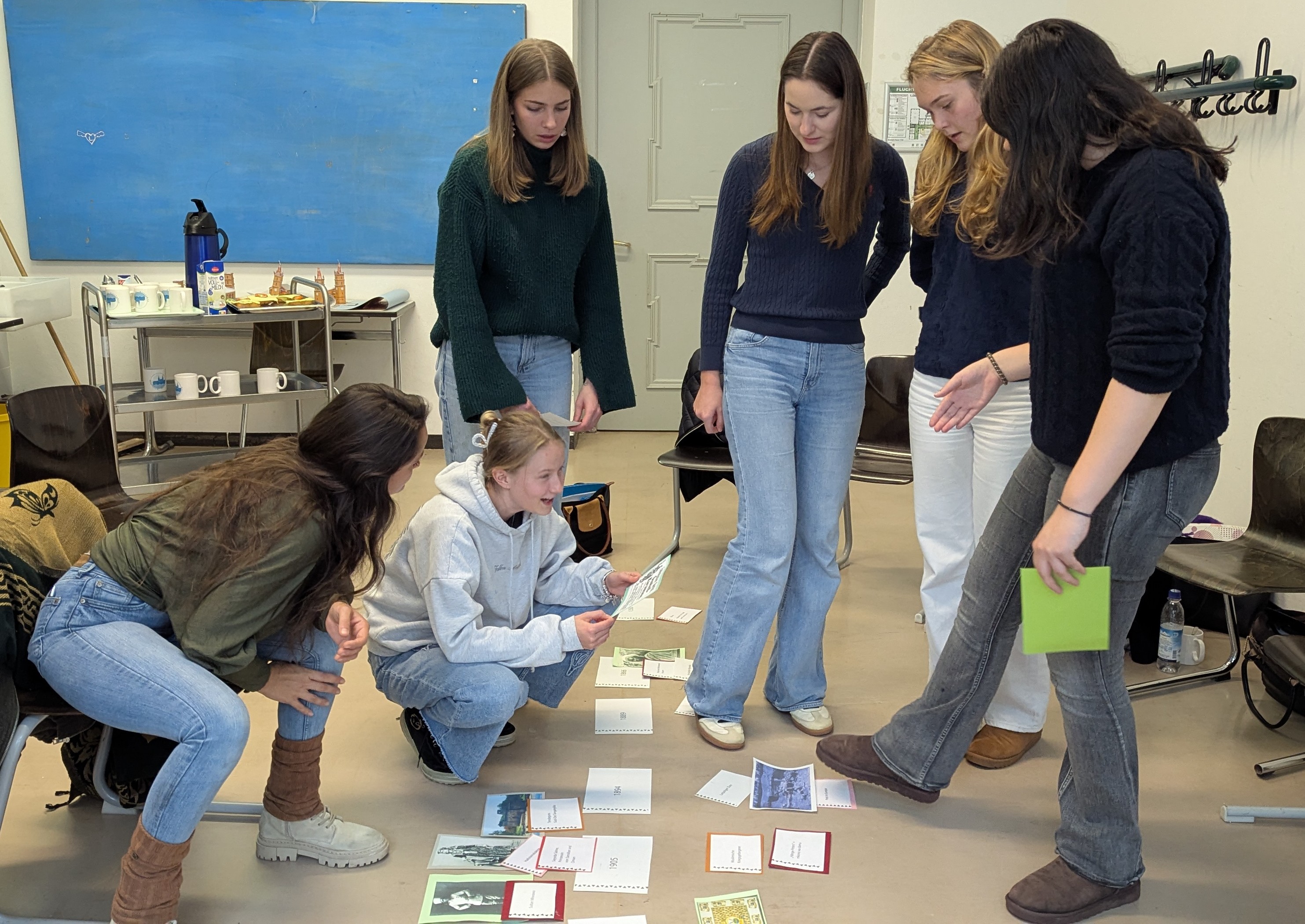 Nach dieser intensiven Auseinandersetzung mit Privilegien und Chancengleichheit folgte im zweiten Teil des Nachmittags die Methode „Connecting the Dots“ (Zeitstrahlmethode), mit der die Gruppe die Verflechtungen der deutschen Geschichte mit Tansania untersuchte. Die Schülerinnen und Schüler ordneten historische Ereignisse, Orte und Personen entlang eines Zeitstrahls und entdeckten überraschende Verbindungslinien zwischen beiden Ländern. Anhand von Bildern, Jahreszahlen und kurzen Texten wurde deutlich, dass diese Beziehungen weit älter und komplexer sind, als viele vermutet hatten.