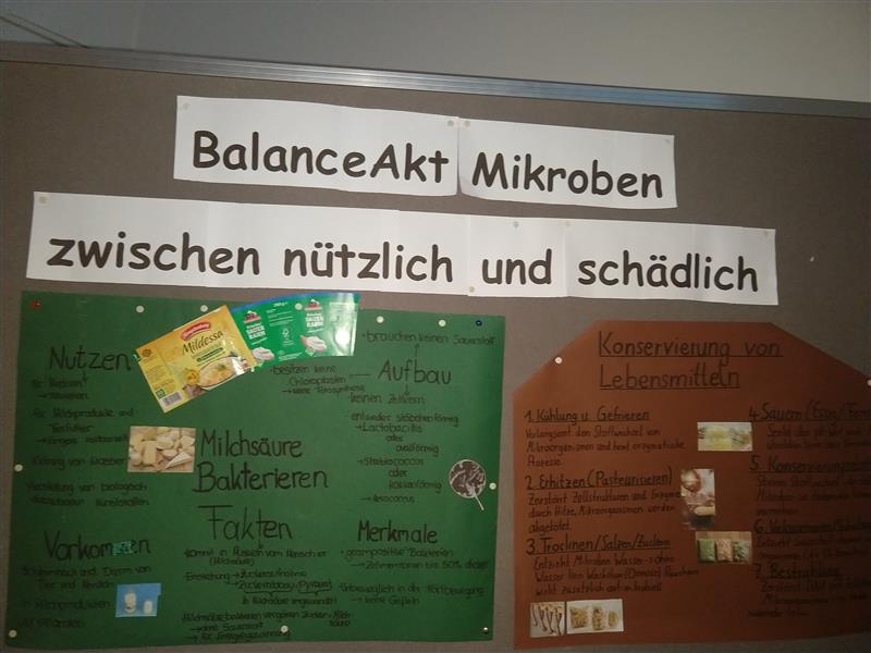 In verschiedenen Gruppen erarbeiteten sie informative und kreativ gestaltete Plakate, die zeigten, wie vielfältig Mikroorganismen unser Leben beeinflussen – mal positiv, mal gefährlich. Dabei standen Themen wie Antibiotika, Darmbakterien, Essigsäurebakterien, Hefen, Konservierungsmethoden, Sauerteig und Salmonellen im Mittelpunkt.