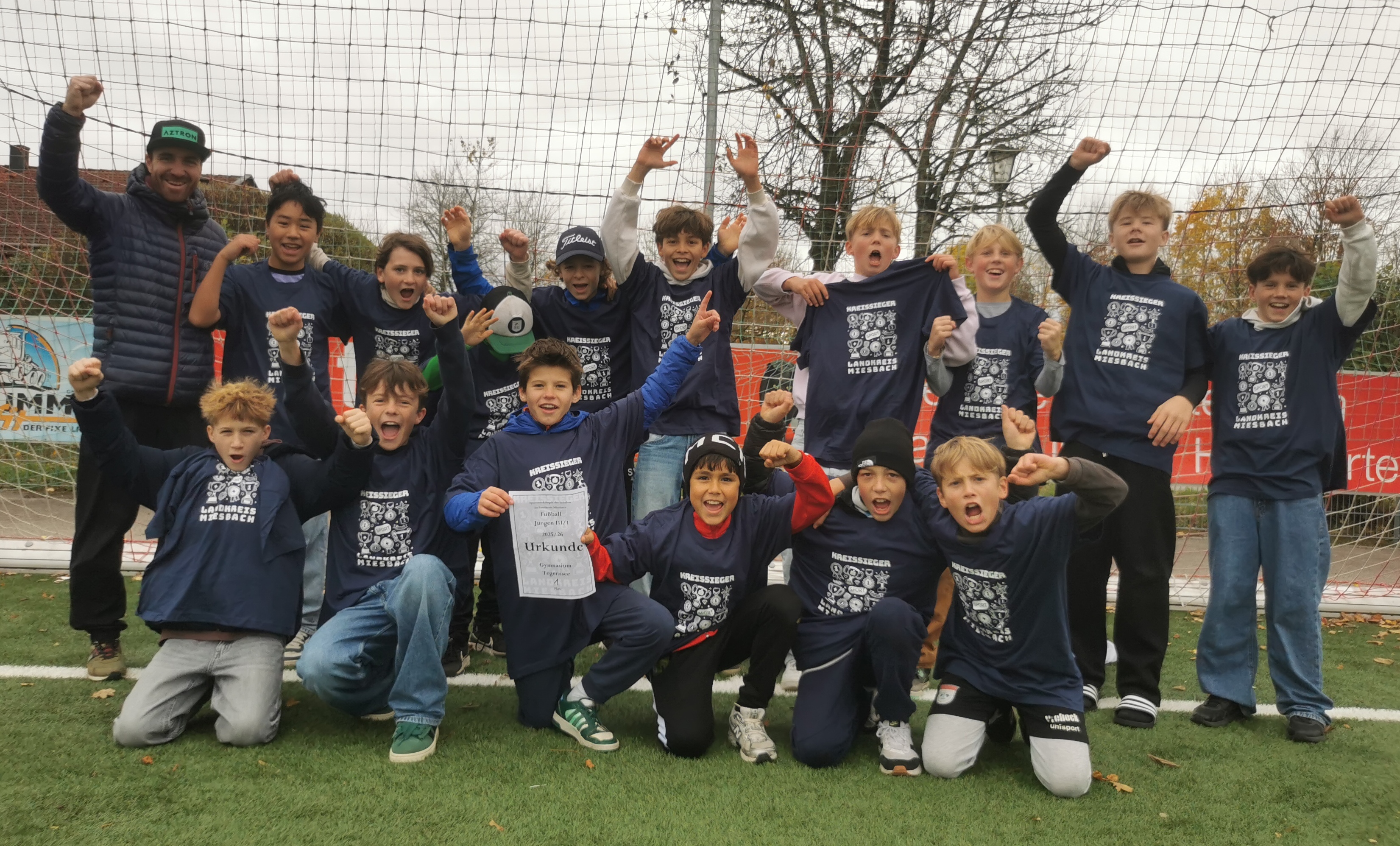 Pünktlich zu den Allerheiligenferien konnte die Kreismeisterschaft im Fußball in der Altersklasse Jungen III (2012 – 2014) für das Gymnasium Tegernsee errungen werden. Die zum Teil noch recht junge Mannschaft konnte spielerisch sowie kämpferisch auf ganzer Linie überzeugen und dominierte die ersten beiden Spiele gegen das Gymnasium Holzkirchen (6:0) und das Gymnasium Miesbach (4:1). Da auch die Realschule Miesbach ihre beiden ersten Partien gewann, war das letzte Spiel gleichzeitig schon das Finale um den Kreismeistertitel. Die spannende Partie war lange Zeit offen und wurde erst kurz vor Ende durch einen Elfmeter mit 1:0 zu Gunsten des Gymnasiums Tegernsee entschieden, sodass die Kreismeisterschaft gefeiert werden konnte.