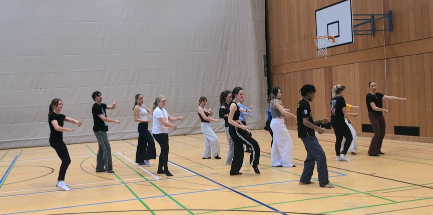 Die Energie und Dynamik des Dozenten sowie der Musik sorgten für eine gelöste Atmosphäre und sichtbaren Spaß bei der Arbeit, ganz nach seinem Leitprinzip:„Dancing ist the joy of movement and the heart of life!“