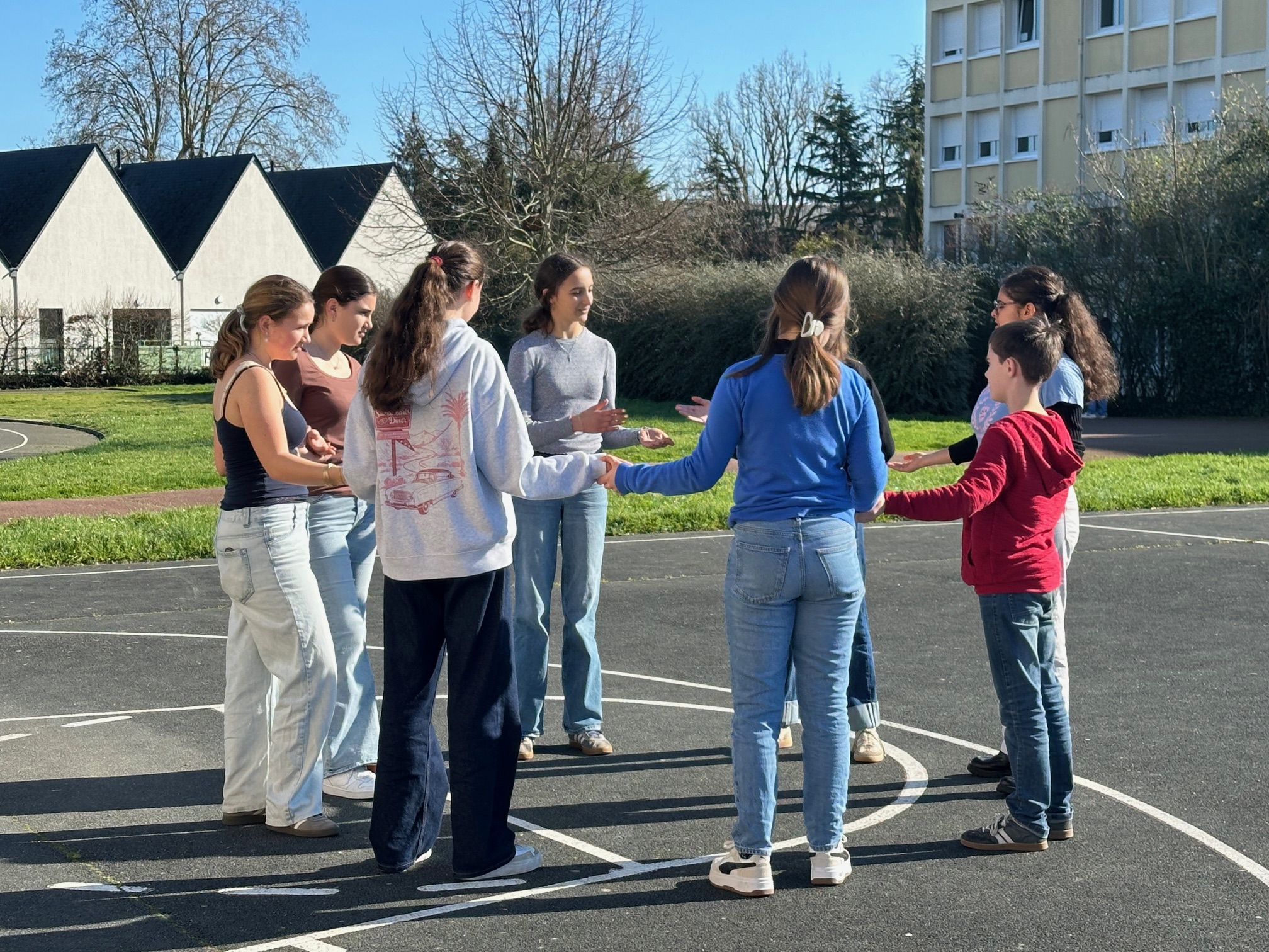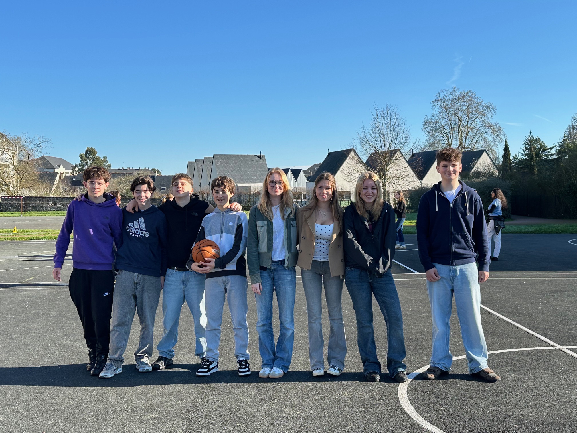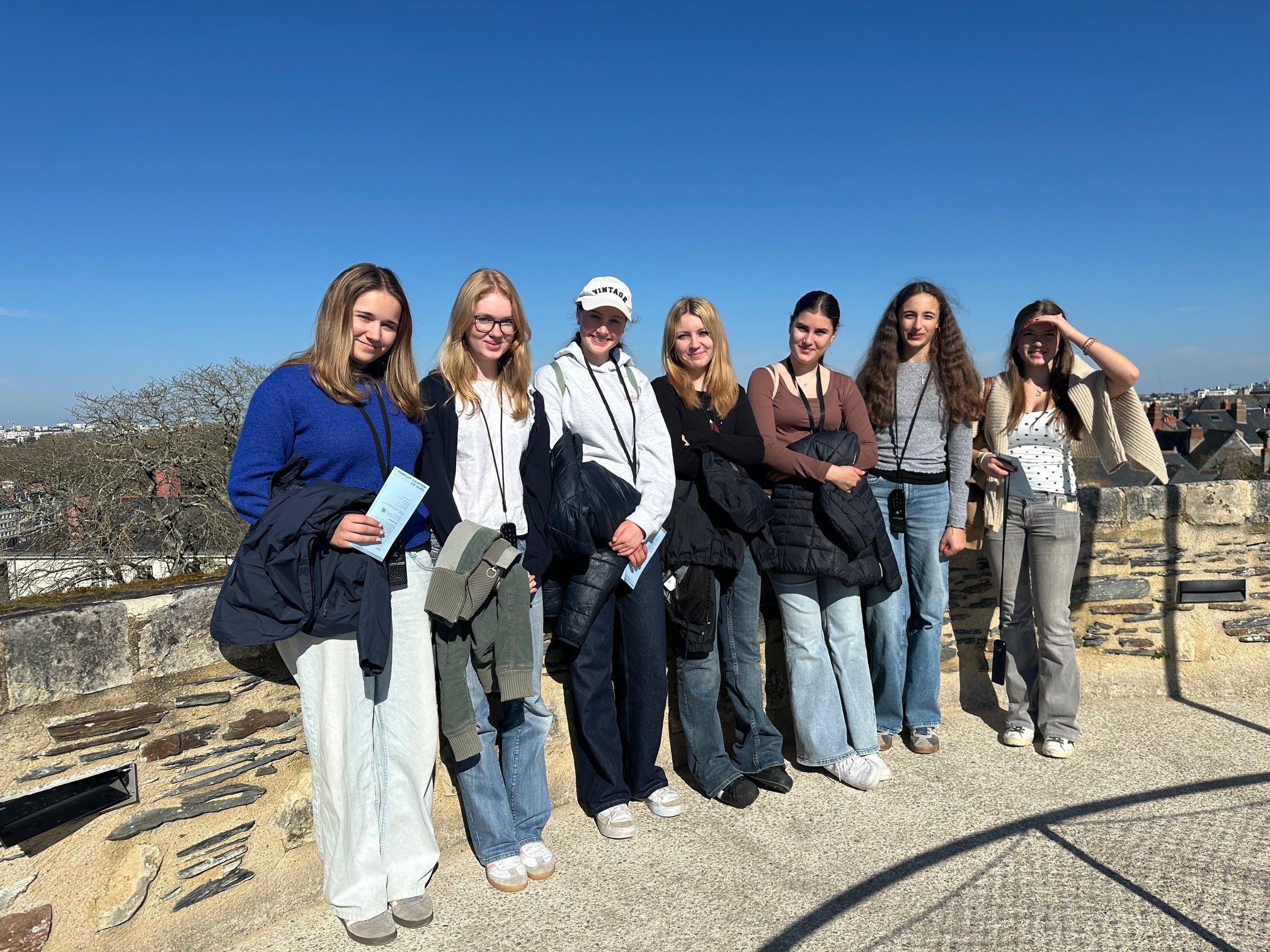 Nach einer zwar bequemen, aber dennoch sehr langen Anfahrt von 12 Stunden mit dem Zug war die Aufregung bei der Ankunft groß. Jedoch haben die Gastfamilien uns alle gleich sehr herzlich aufgenommen und die Nervosität wandelte sich schnell in Vorfreude auf die bevorstehende gemeinsame Zeit. Am ersten Tag unseres Aufenthalts wurden wir mit einem deutsch-französischen Willkommensfrühstück an der Schule begrüßt. Danach zogen wir in deutsch-französischen Teams durch das Schulhaus, um das Gebäude und einander erst einmal besser kennenzulernen. Anschließend besuchten wir das Schloss von Angers - eine kulturelle Besonderheit der Stadt. Nach der Schule begleiteten wir dann unsere Austauschschüler in einen sehr schönen Park, in dem wir bis zum Tennistraining unserer Corres, bei dem wir auch teilgenommen haben, die Zeit verbrachten. Den ersten und auch viele weitere Abende ließen wir mit dem Abendessen in der Gastfamilie und einem kleinen Spieleabend ausklingen.