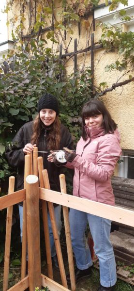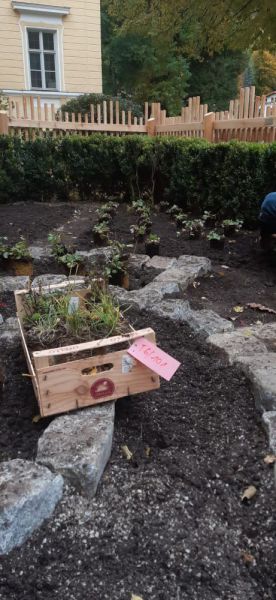 In der letzten Phase unserer Arbeit einigten wir uns auf ein Zaundesign, bauten diesen eigenhändig auf und pflanzten endlich die Blumen und Kräuter ein.